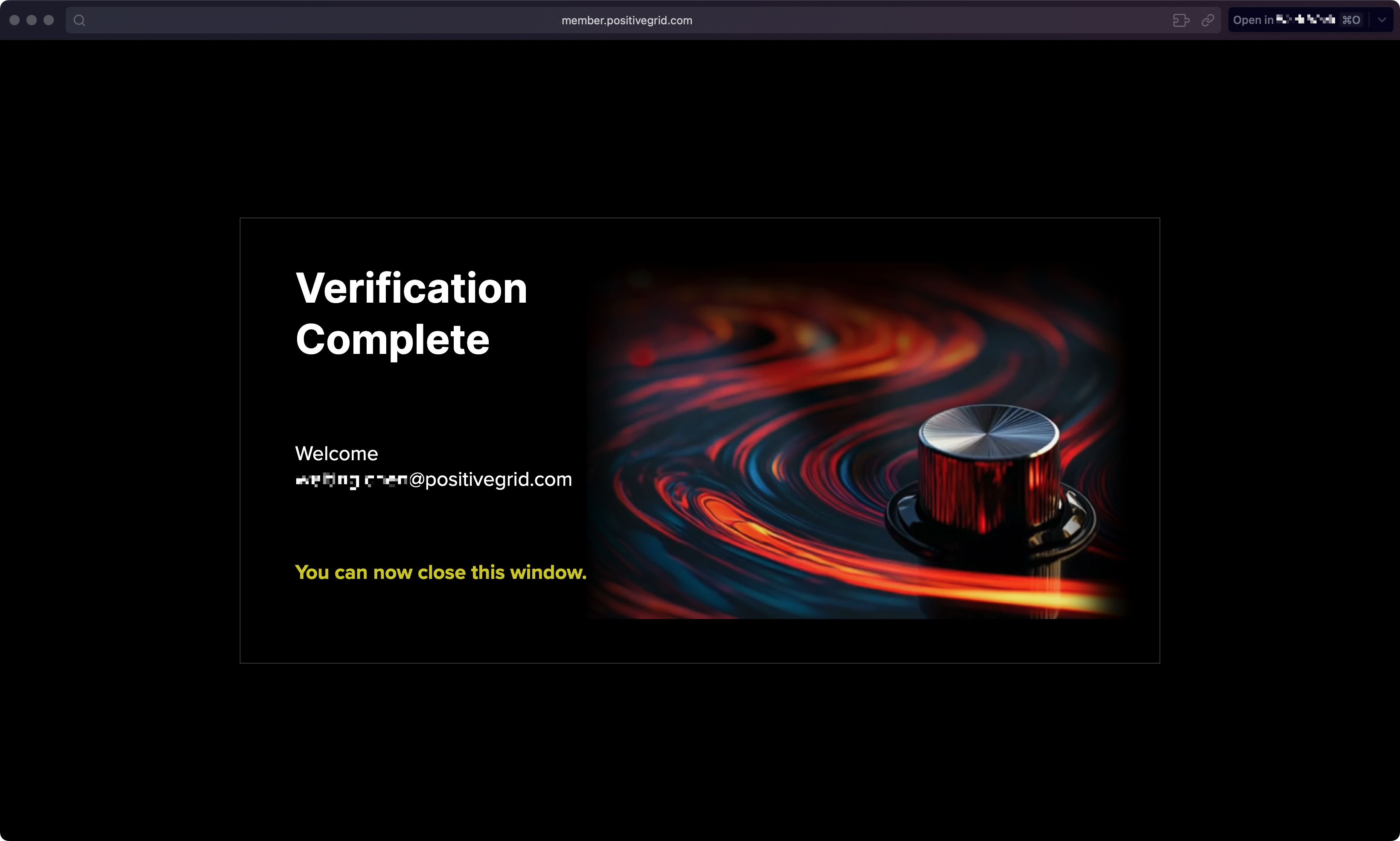 A browser window will open. Log in with your Positive Grid account to activate your license.