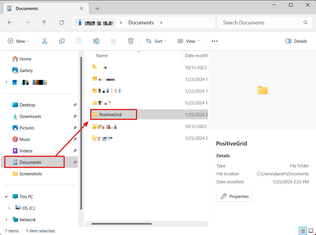 2. Navigate to "\Documents\PositiveGrid\".