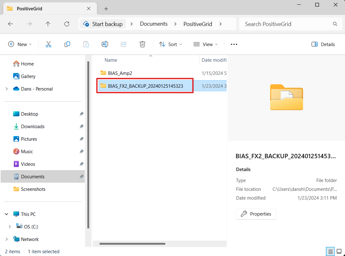 4. Rename the backup folder from "BIAS_FX2_BACKUP_yyyymmddhhmmss" to "BIAS_FX2".