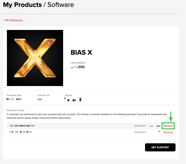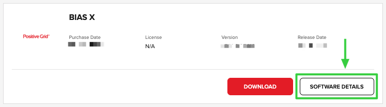 2. Find BIAS X and click the SOFTWARE DETAILS button.