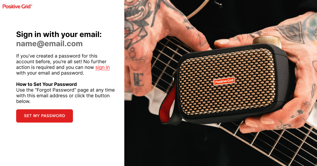 Starting October 23, 2025, Apple and Facebook login options will be removed from the Positive Grid website and apps (including Spark and BIAS X). You’ll need to use an email address and password to continue accessing your account.