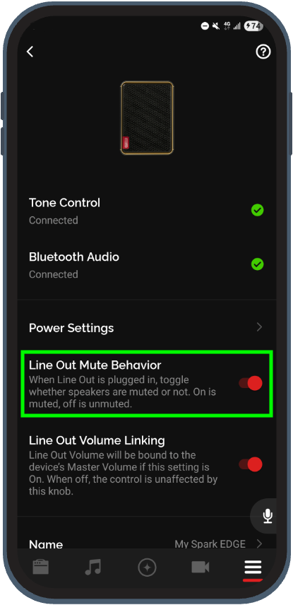 2. Go to the Menu page and tap on your Spark EDGE at the top of the page to enter your Spark EDGE's Device Detail Page.