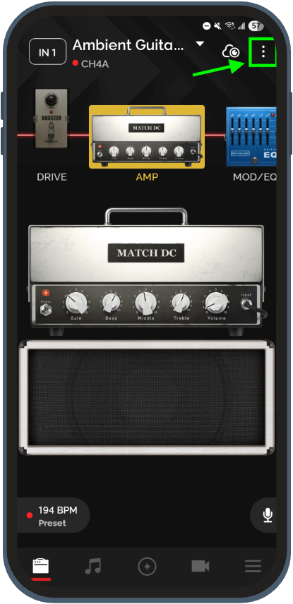 Tap the drop-down menu icon in the top-right corner of the preset screen.